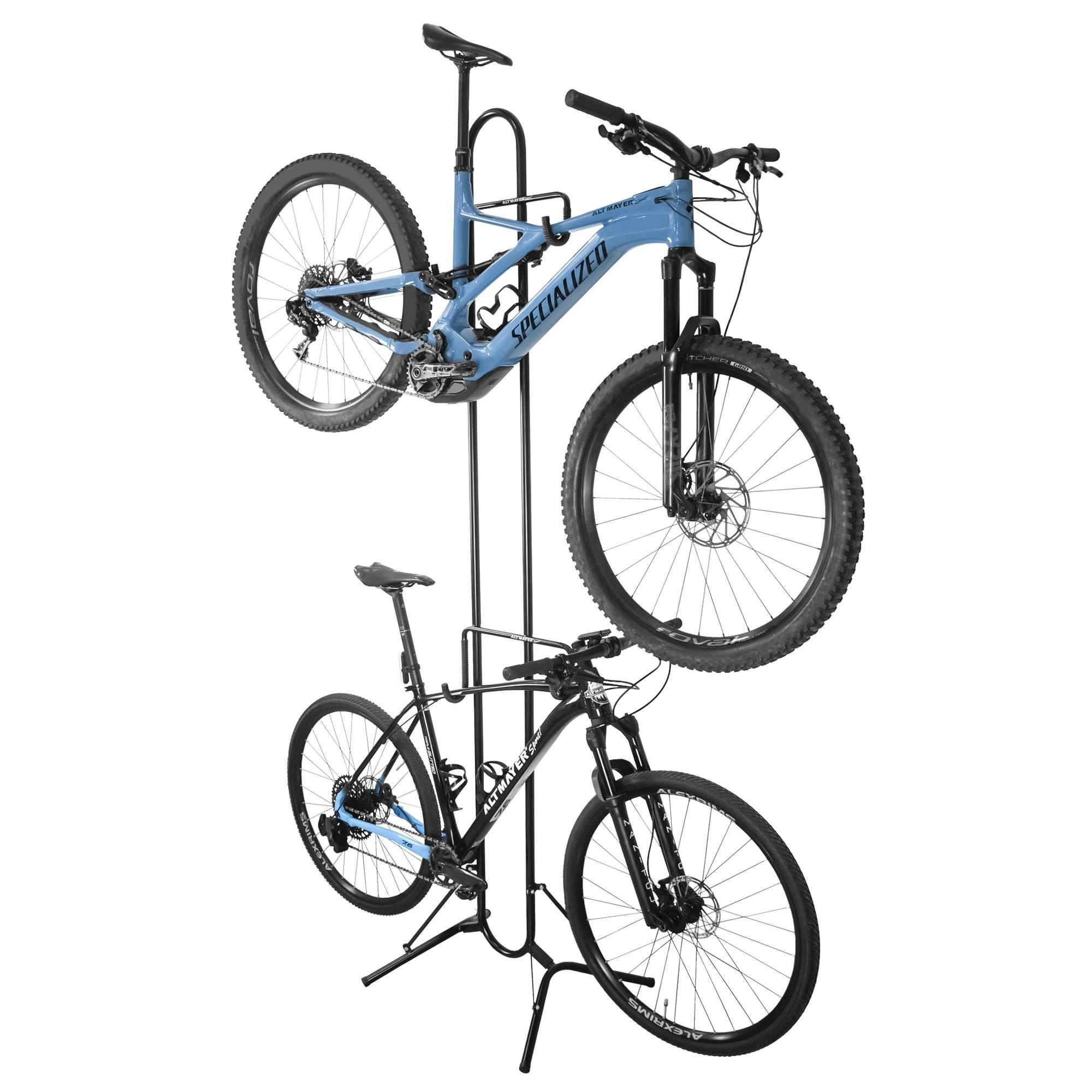 Ótima opção para expor duas bicicletas economizando espaço!