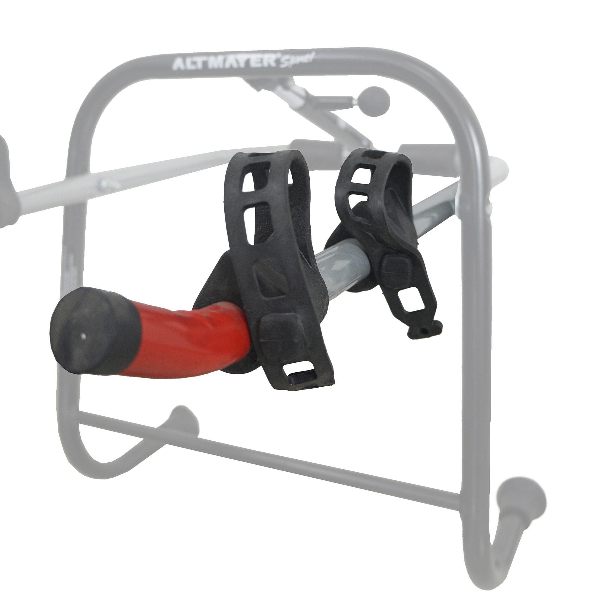 As bicicletas são presas por abraçadeiras de borracha. Possui duas regulagens de abertura.
