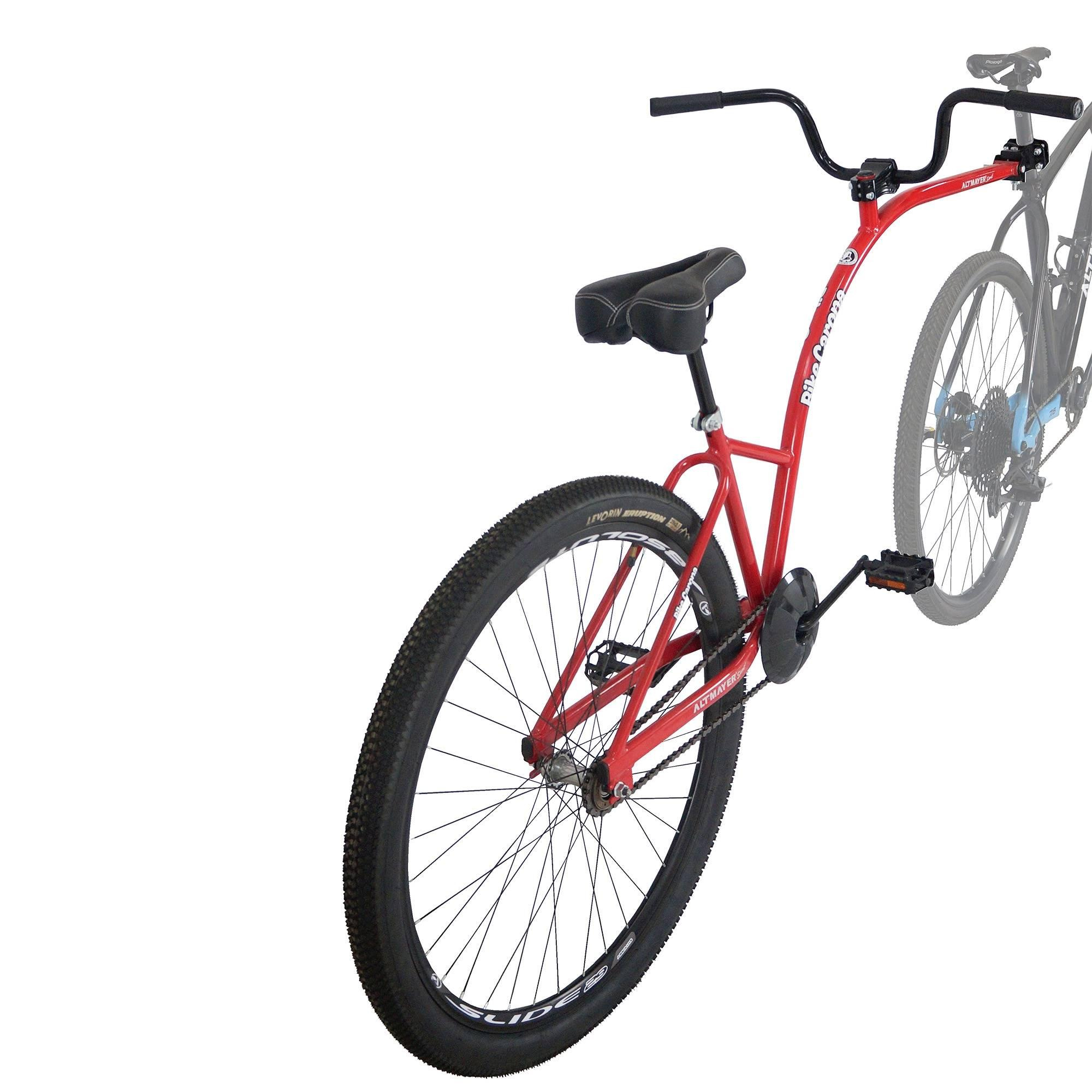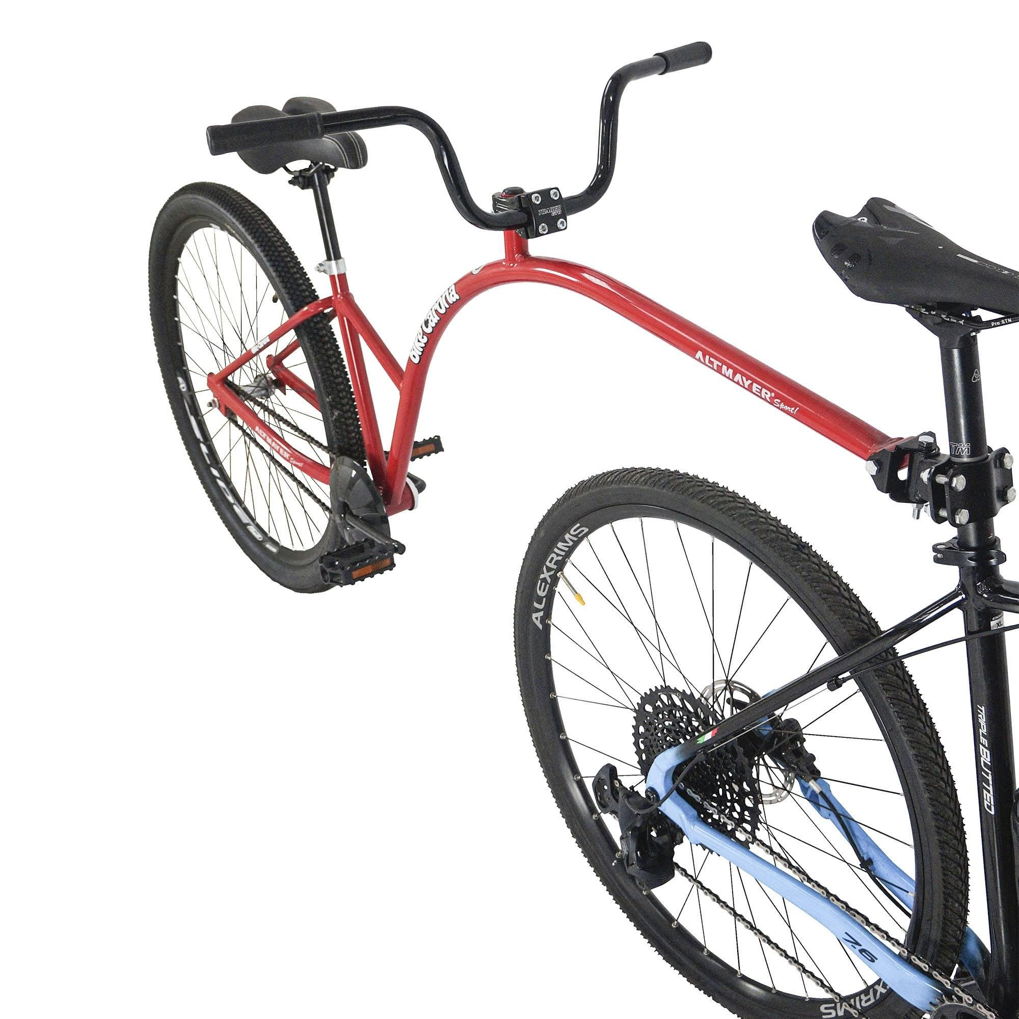Possui um sistema de encaixe onde os movimentos da bicicleta da frente não desequilibram o carona,