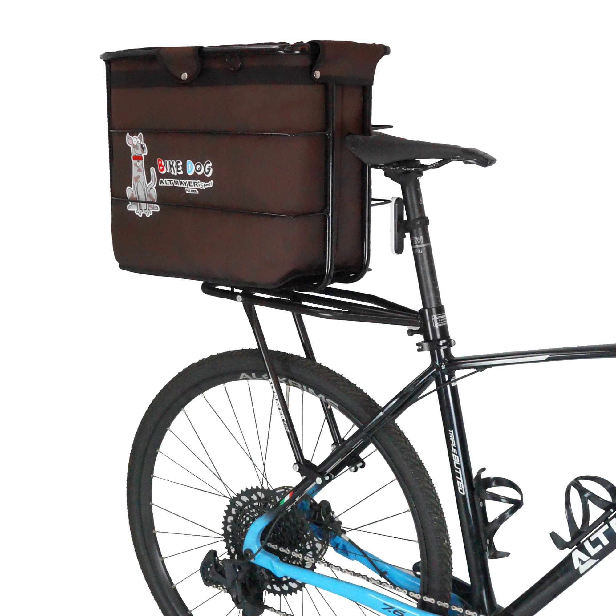 A cadeirinha é acoplada ao bagageiro da bicicleta;