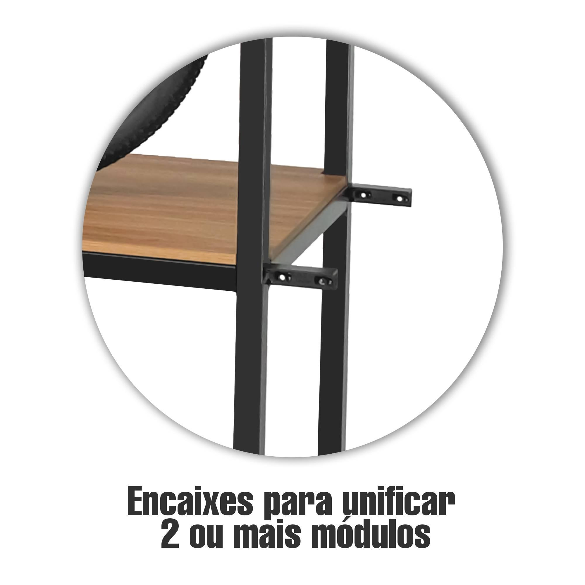 Conta com andares de MDF premium de alta resistência na cor marrom feijó de 15mm;