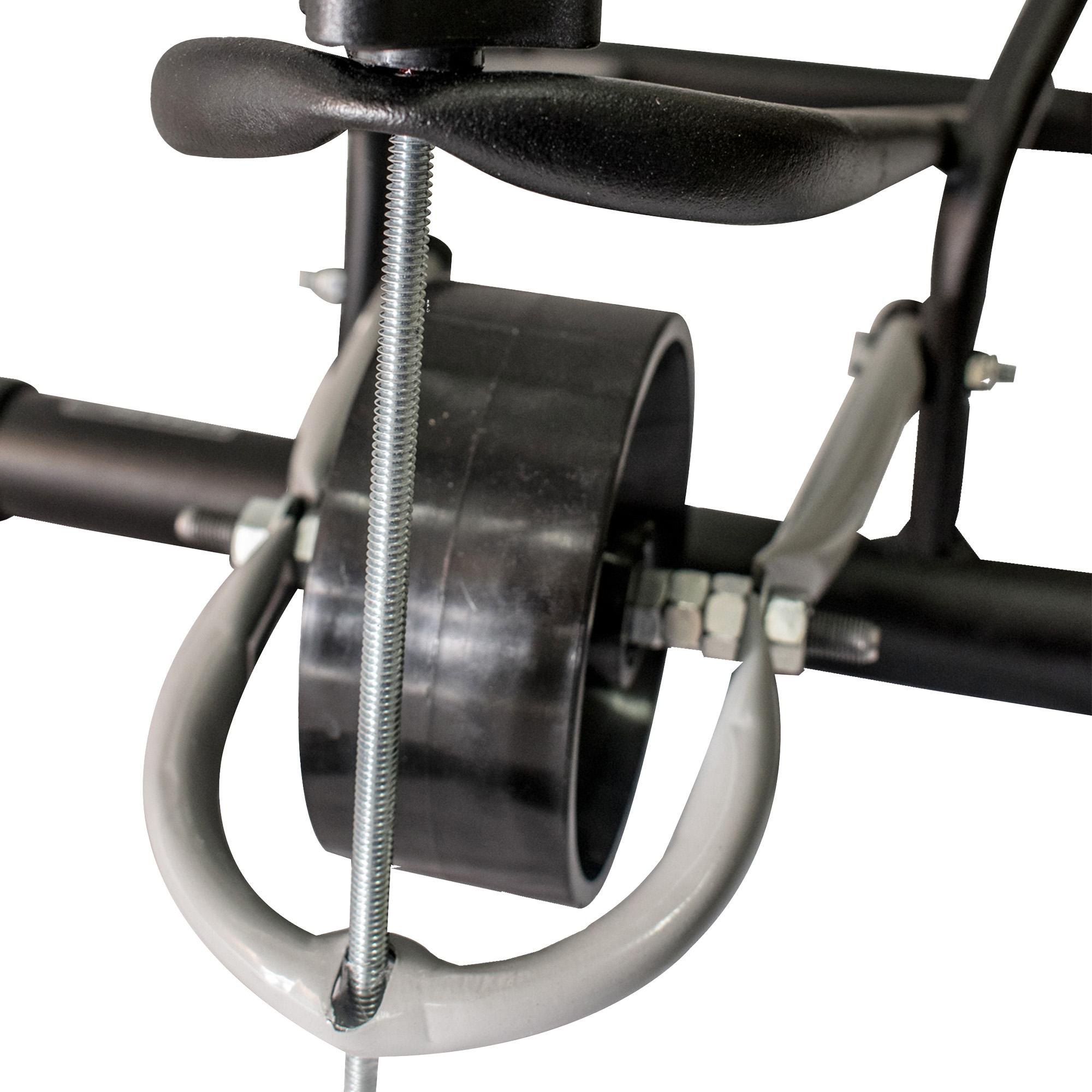 Conta com regulagem de esforço através de um mecanismo que faz a roldana do pruduto se movimentar